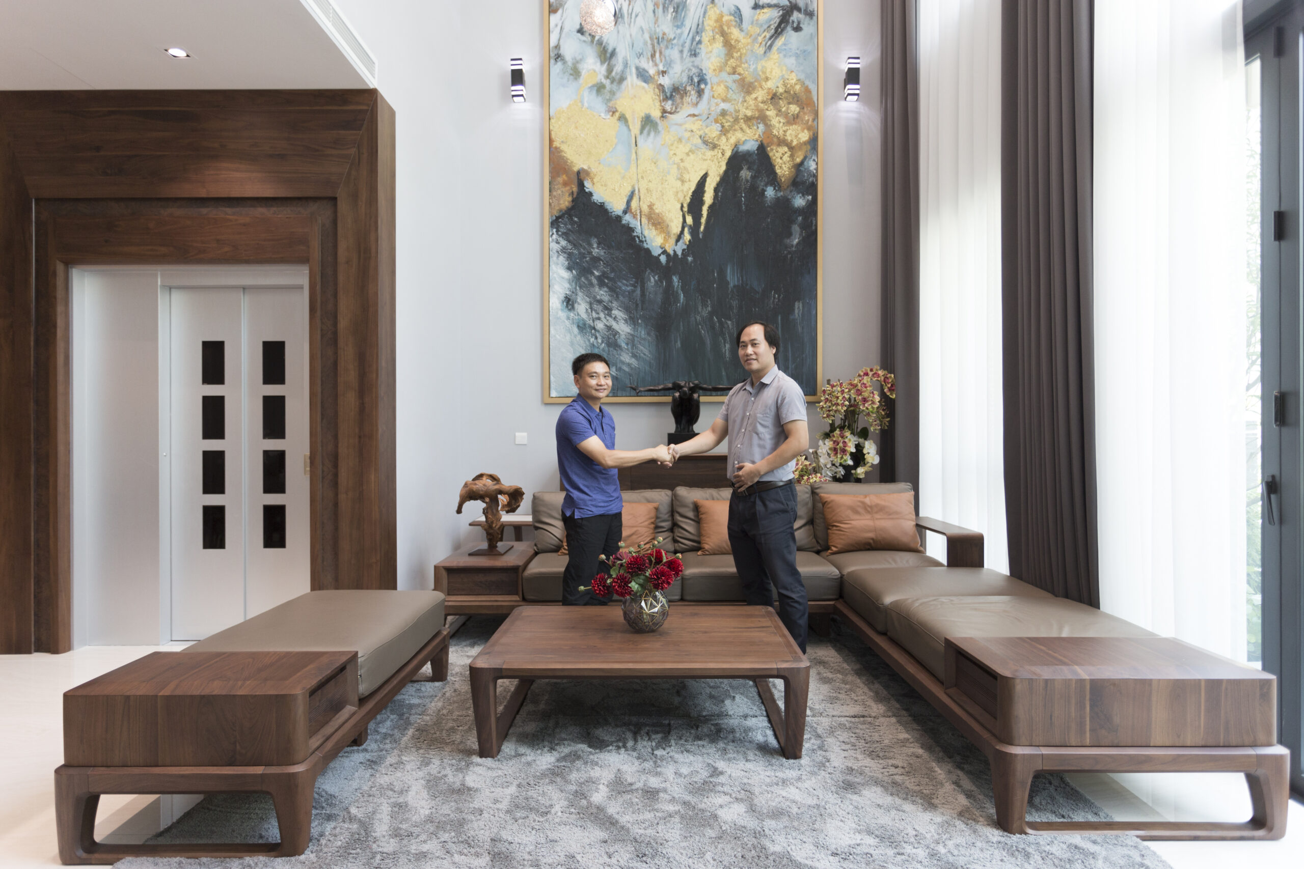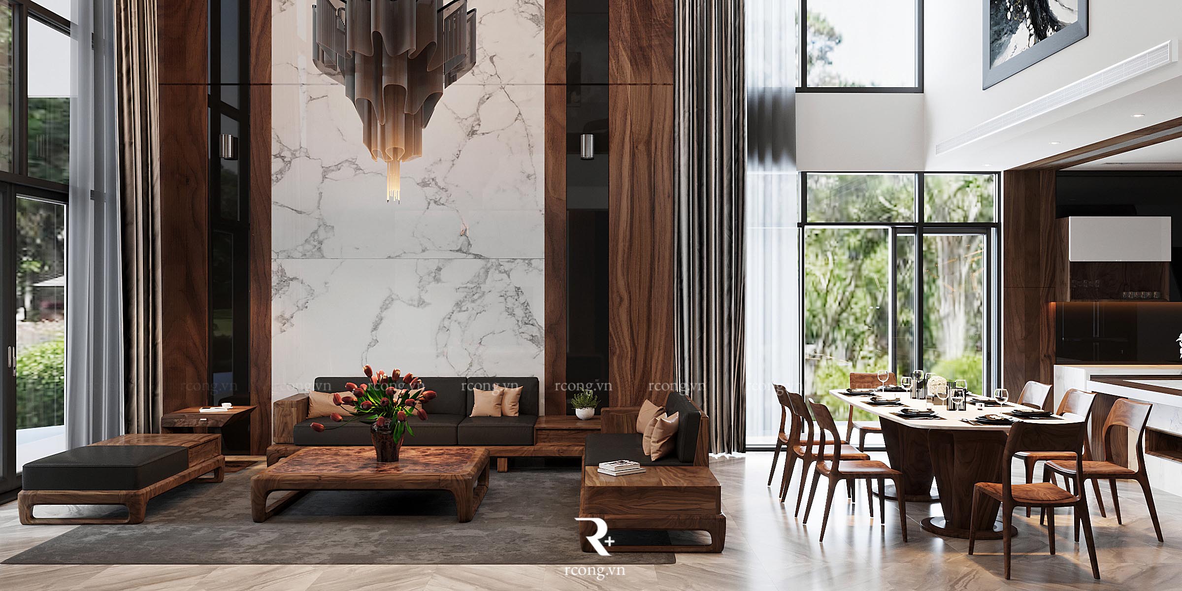 Chiêm ngưỡng nội thất phòng khách gỗ óc chó năm 2023