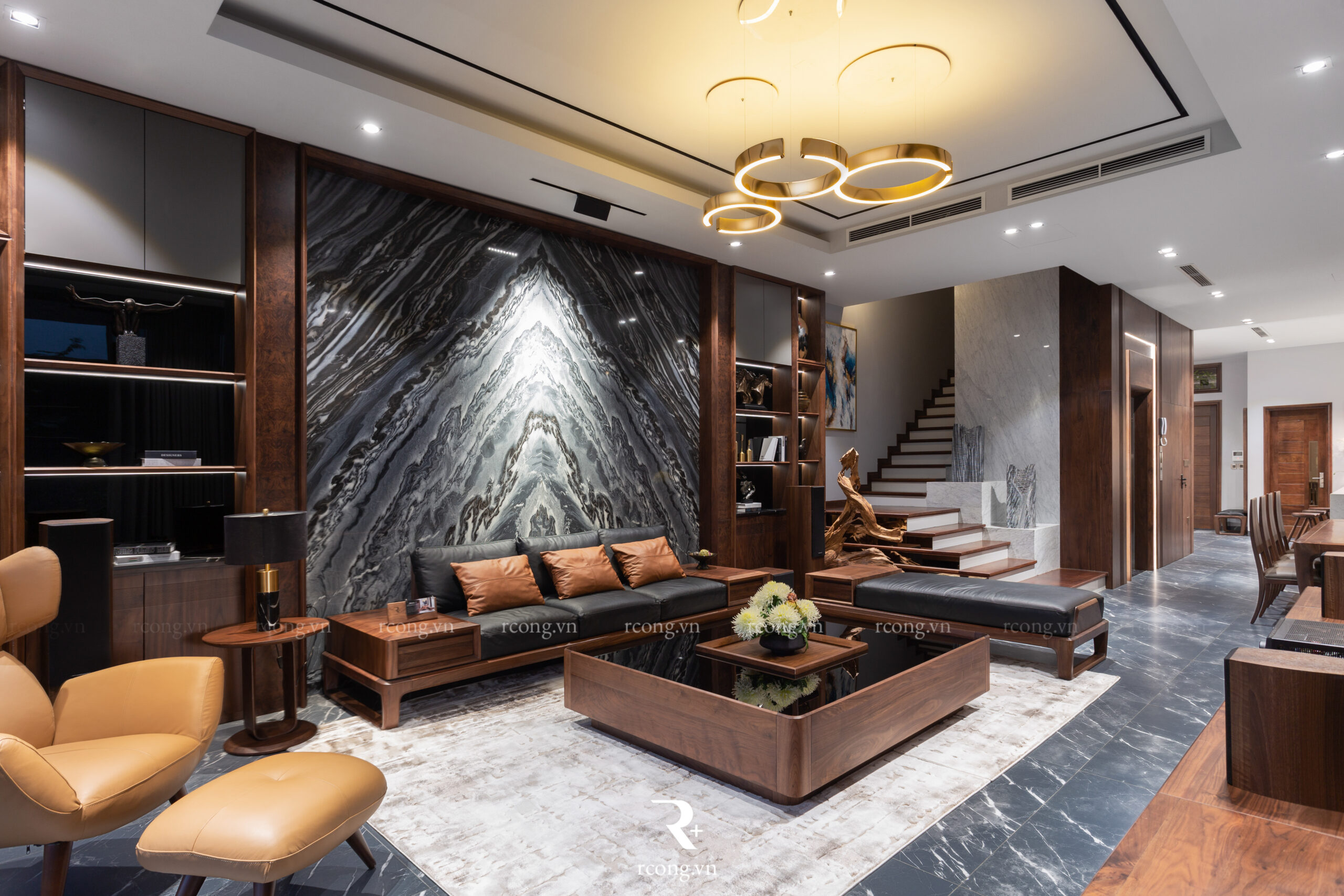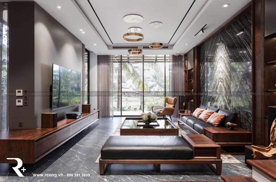 Nội thất biệt thự song lập với gỗ óc chó cao cấp