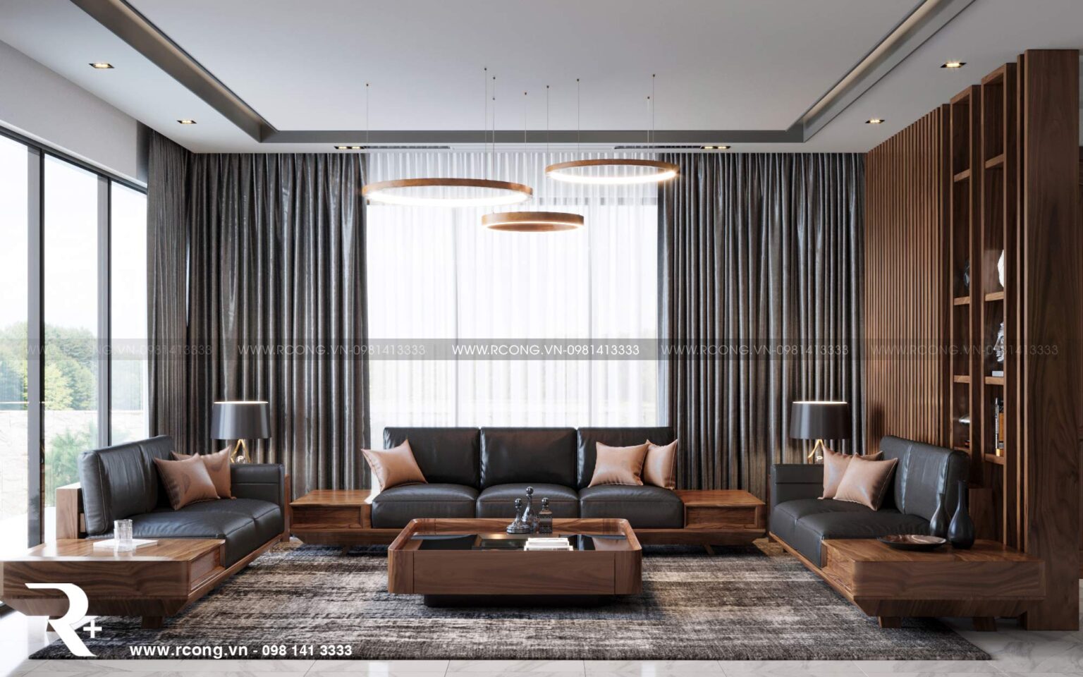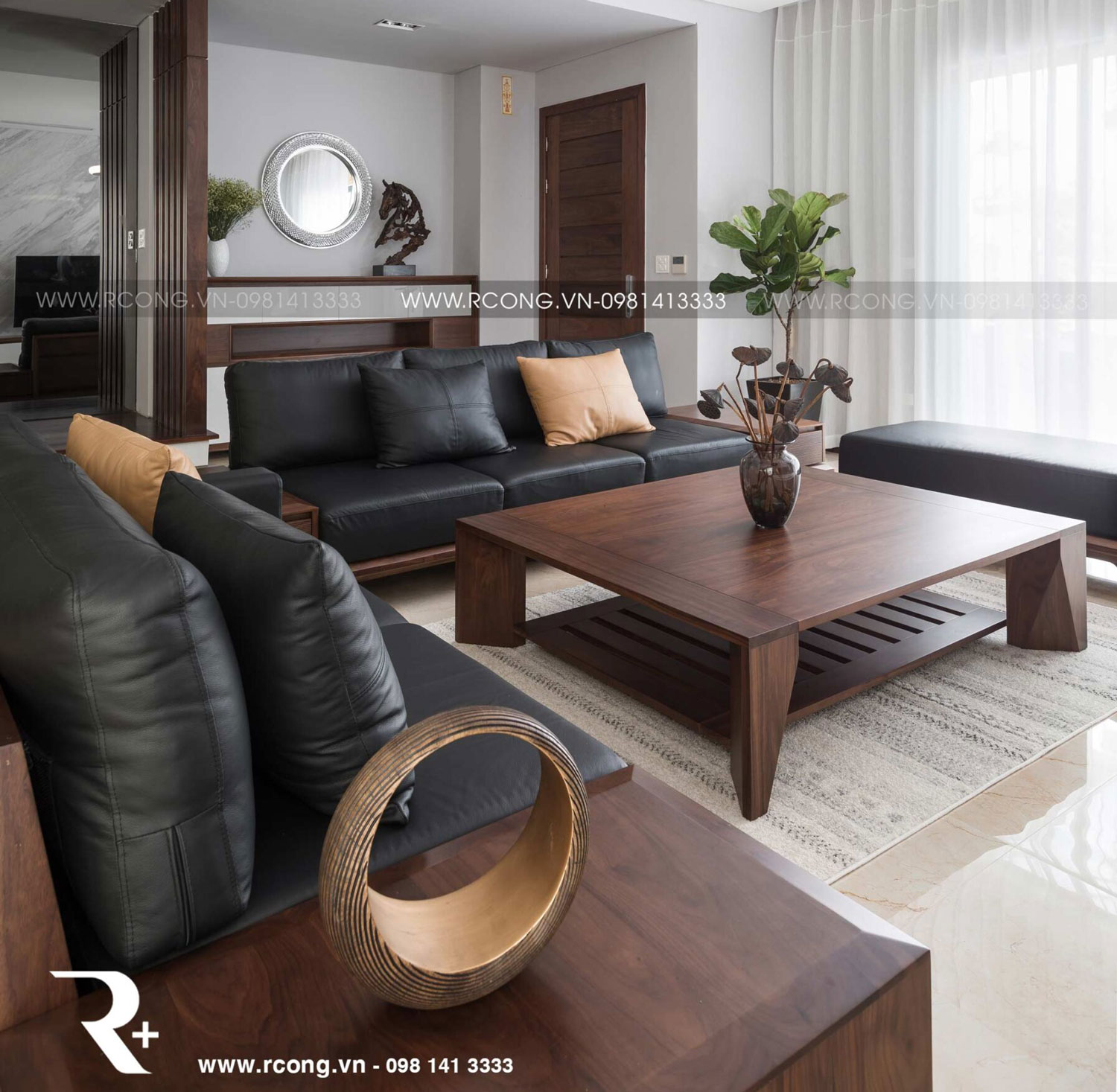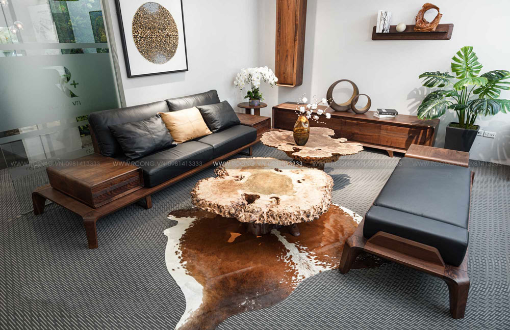 Phong thủy phòng khách với nội thất gỗ óc chó