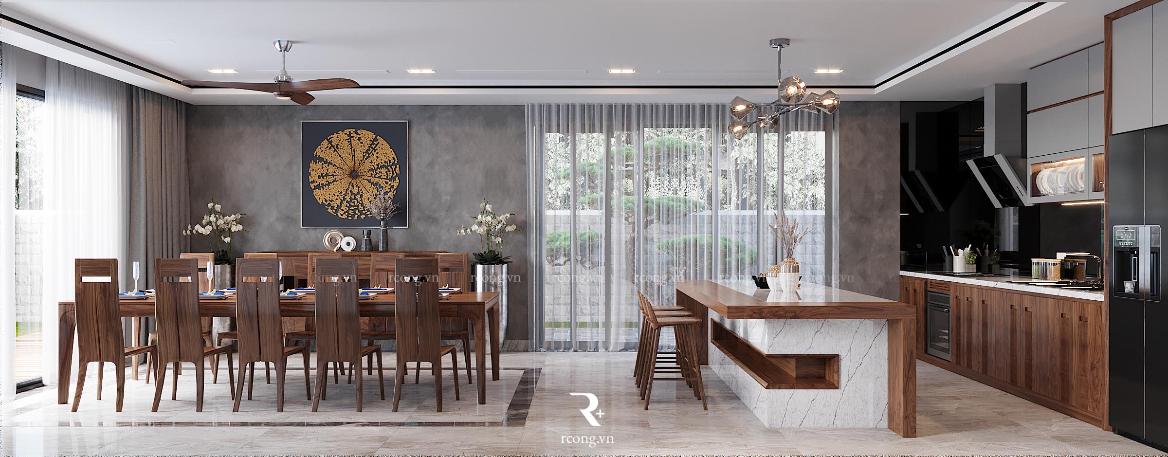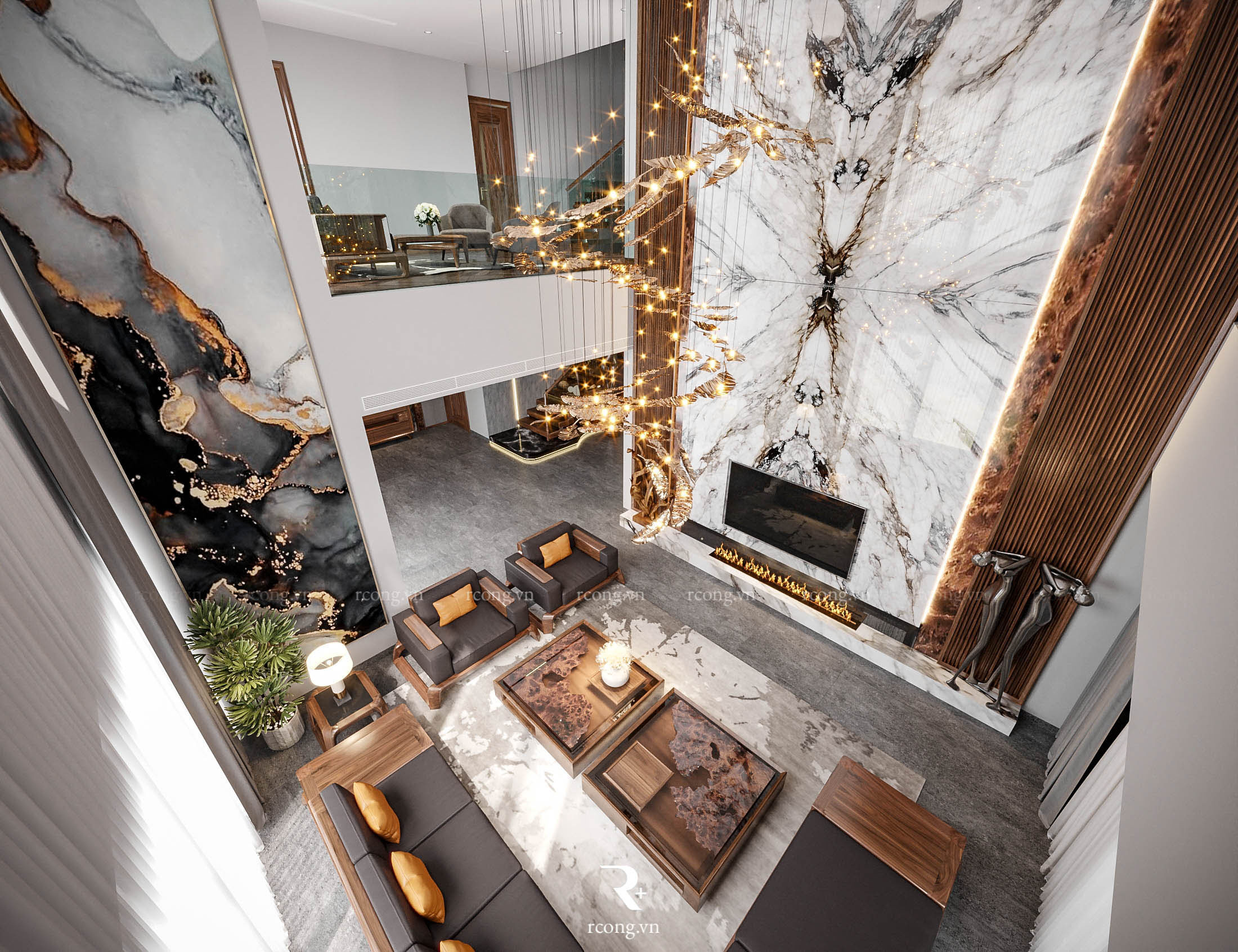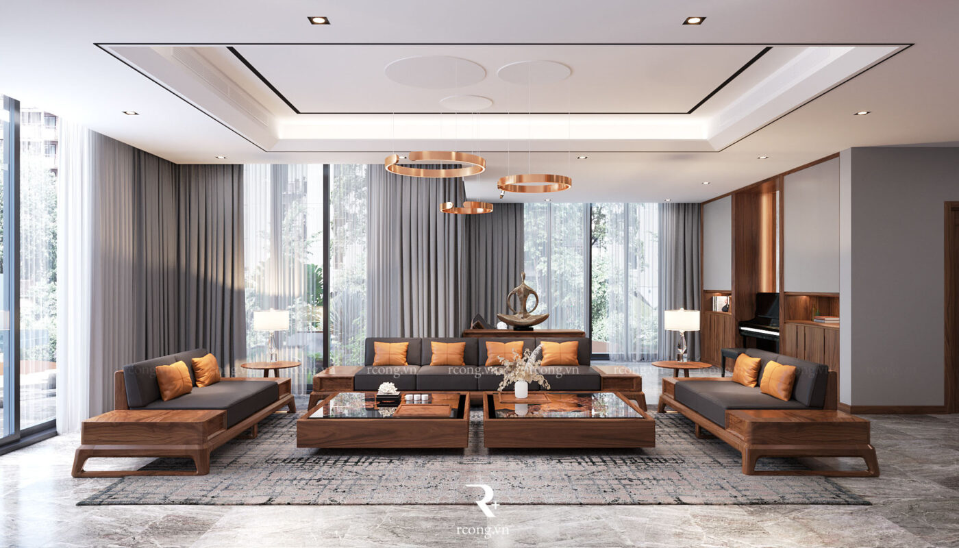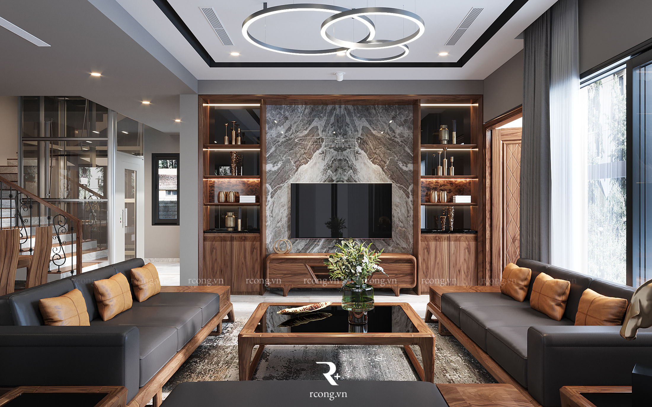 Thiết kế nội thất biệt thự Ecopark 3 triệu đô với gỗ óc chó